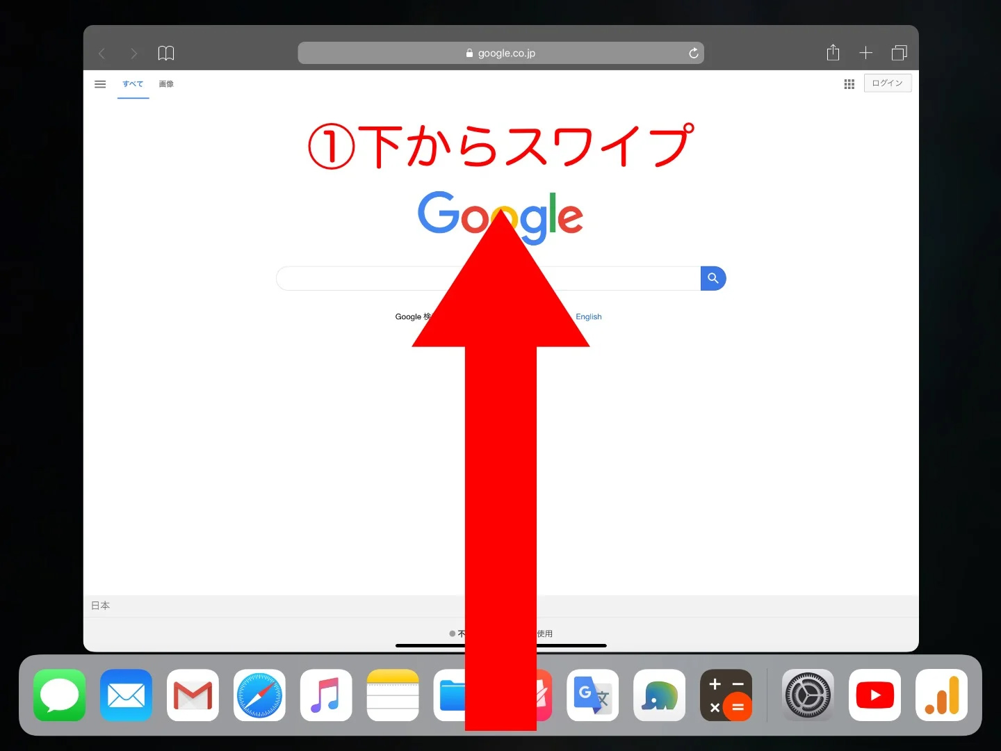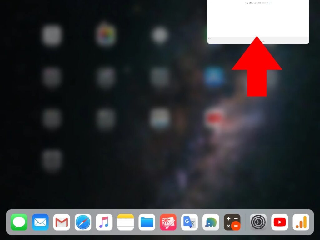 1.画面の下部から上に向けてスワイプしてください。(ホームボタンのあるiPadの場合は、ホームボタンを素早く2回押してください)