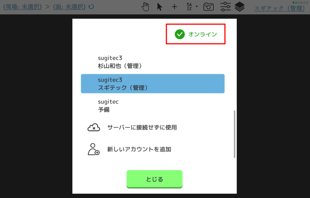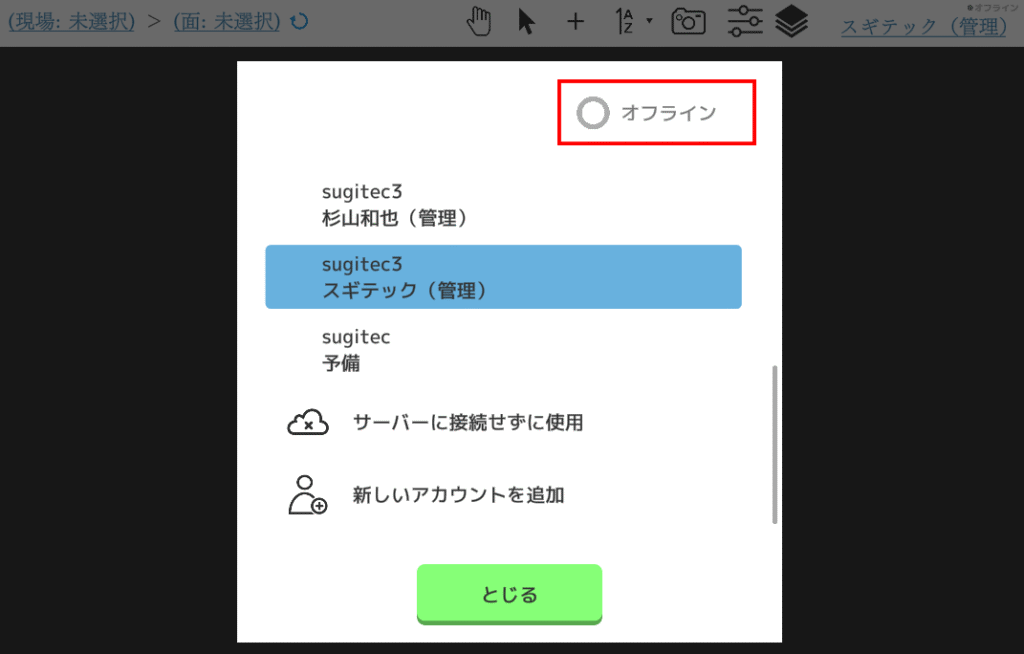 「オンライン」「オフライン」それぞれタップするごとに切り替わります。