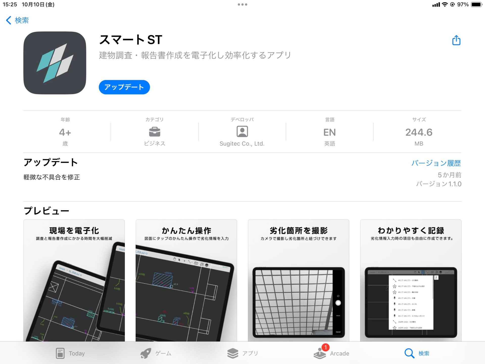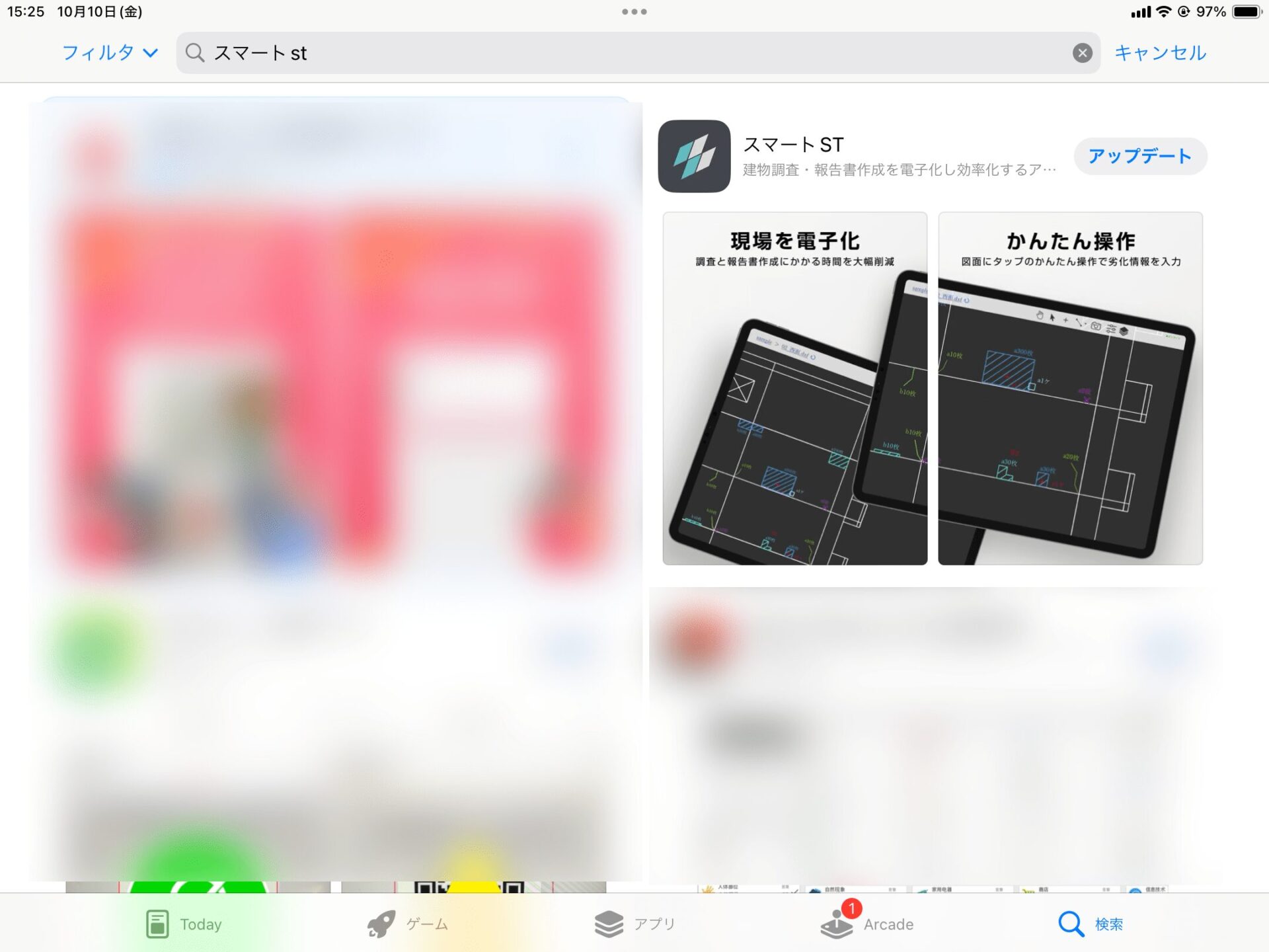 2.下画像のように、検索結果に「スマートST」が表示されますので、インストールを行ってください。また、アプリに更新があった際は「アップデート」ボタンが表示されますので、なるべくアップデートをおこなってください。
