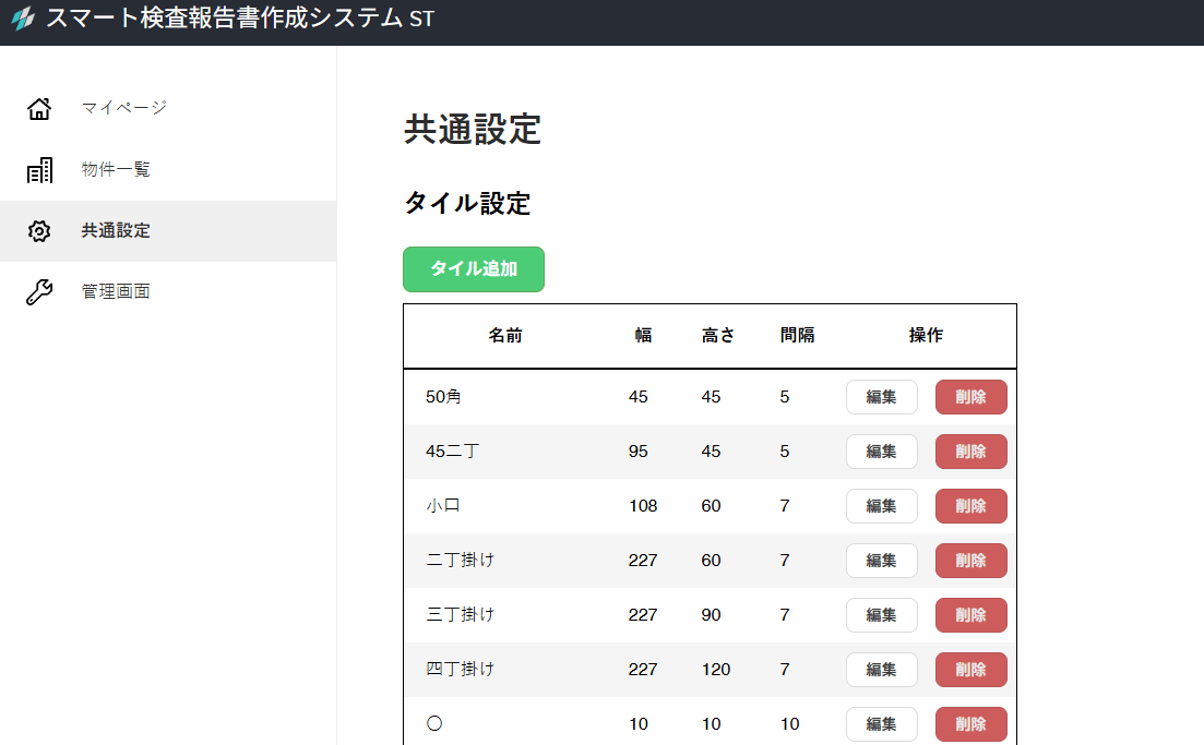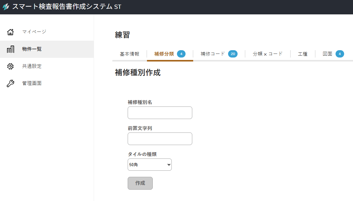 4.追加されたタイルは、物件登録の中の「補修分類」作成時の、「タイルの種類」より選択可能になります。
