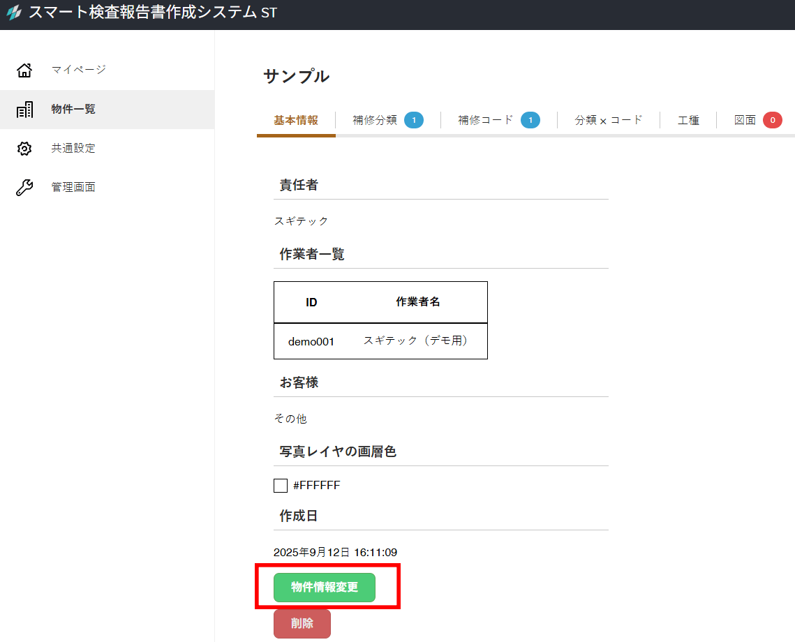 2.物件ページ「基本情報」の中の、「物件情報変更」のボタンを押してください。