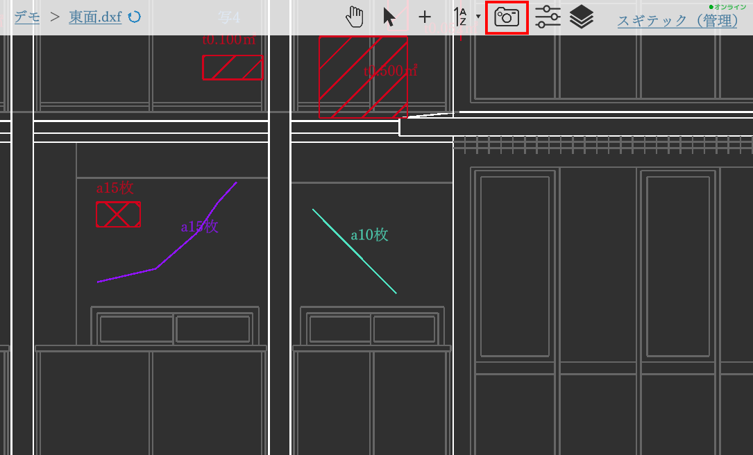 5.撮影した写真を後から確認したい場合は、以下動画のように、配置した写真を「↖」ボタンで選択し、「写真」ボタンをタップすることで確認できます。