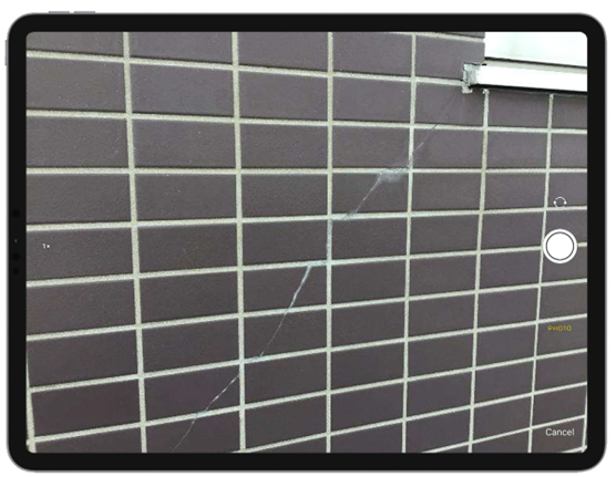 写真はiPadのカメラで撮影することで、かんたんに劣化箇所と紐づけることが可能です。撮影した写真は自動的に写真台帳として出力できます。