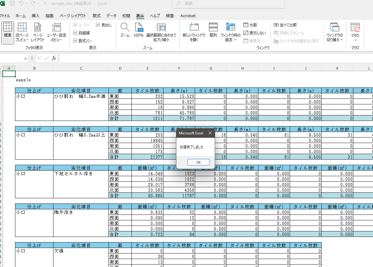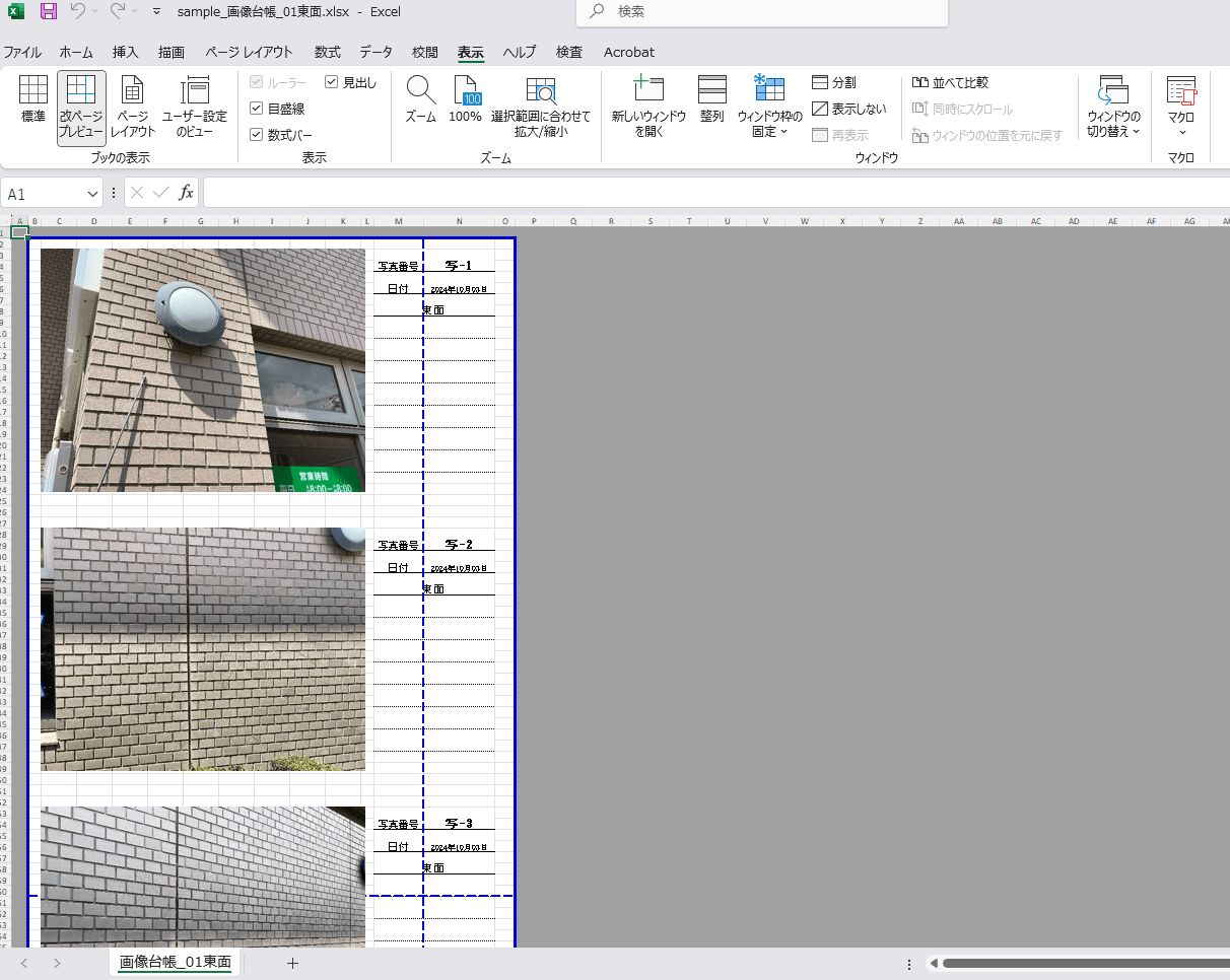 1.数量表と写真台帳は、ダウンロードしたままだと、エクセルで開いた際にレイアウトが整っていません。しかし、この手順を実行することで、ワンクリックでレイアウトを整えることができます。