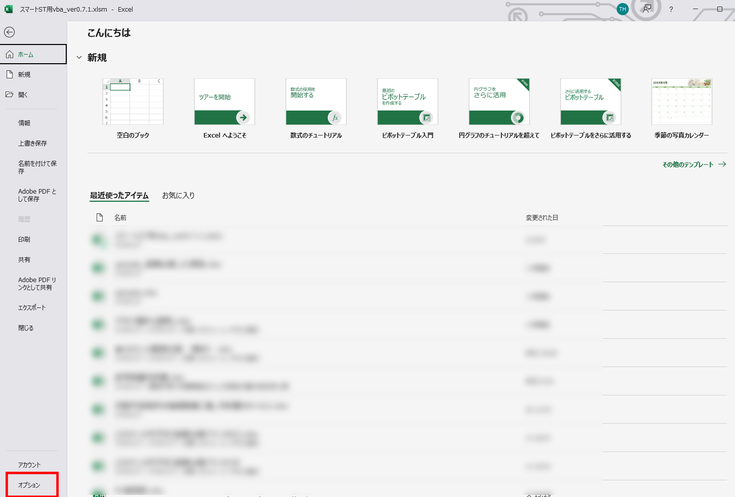 まず、納品時に配布しましたエクセルデータ「スマートST用vba_ver0.7.1.xlsm」を開きます。